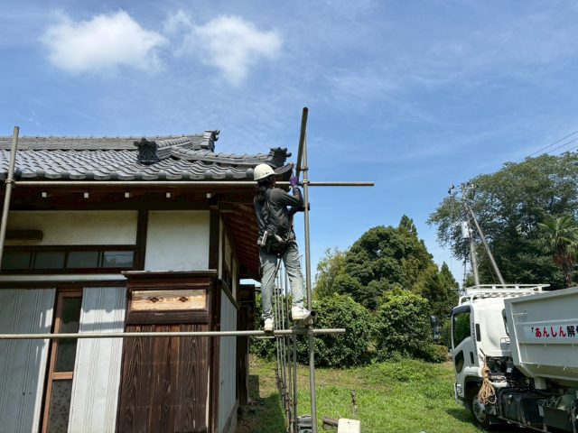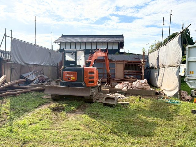 残置物撤去→内装解体→養生シート設置→屋根撤去→母屋解体→基礎解体→整地 - 工事期間