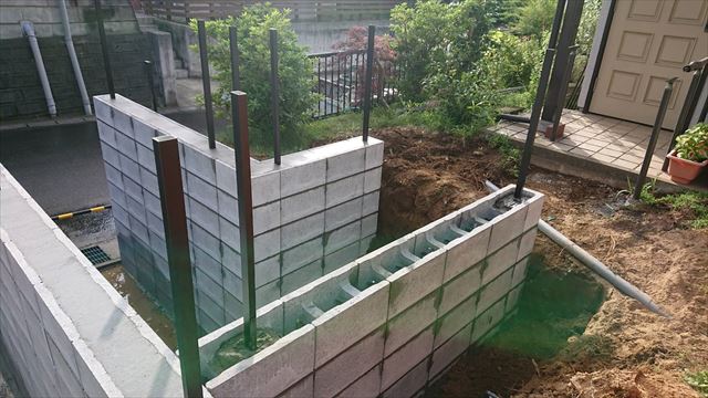 生コンを打設し、ブロック土留めのベース基礎コンクリート完成です。